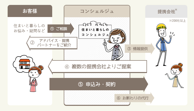 何ができるの?ご状況をお伺いし、ご要望にあった会社のご紹介や段取りなどをお手伝いする無料サービスです。
