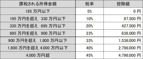 所得金額によって変わる所得税の速算表については下記の表のとおりです。