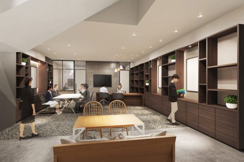 カフェなどの飲食店もオープン予定、中庭もあり、快適に過ごせる空間になります。