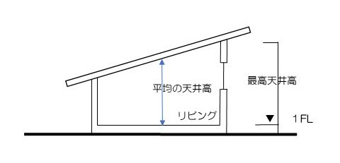 部屋の中で天井高さが異なる場合は、平均の高さを2.1m以上確保する必要があります。