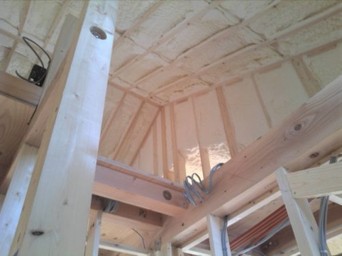 『硬質ウレタンフォーム』は現場で発泡するタイプのものは隙間なく充填でき、厚さも調整できます。発泡するため柱より膨らんでしまった部分はカットしなければなりませんが、カットした切り口から水を吸収してしまうと断熱性能が落ちてしまうものもあります。その際は防湿気密シートを施工し湿気対策をします。デメリットとしては燃えた時に有毒ガスシアン化水素を発生するものもあります。