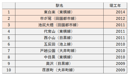 1位は東白楽駅です。50戸以下の大規模ではないマンションが多いエリアで、現在も新築マンションがコンスタントに建設されている印象の駅です。2位は市が尾駅で、こちらも継続してマンション建設が進んでいる駅の一つです。上位2駅は神奈川県内ですが、3位以降は東京都内の駅になりました。もともと戸建ての印象が強いエリアも徐々にマンションが増えてきています。
