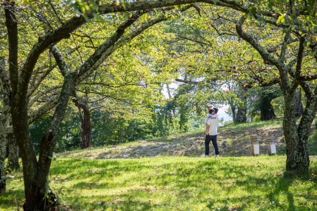 ちょっと疲れたら休憩するテーブルやベンチもそこかしこにあり、赤ちゃんやペットを連れたご家族が