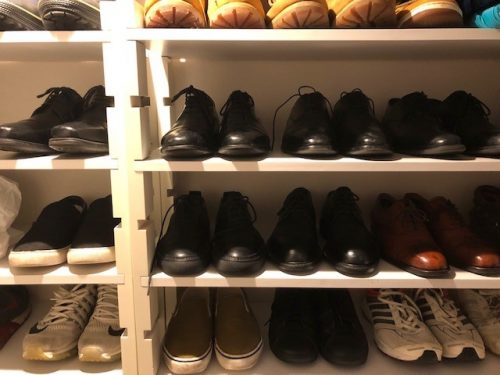 まずは家にあるスニーカー、革靴、パンプス、サンダル、長靴、ブーツなど全ての靴の数、幅、高さを調べ、設置場所に合う大きさを決めます。