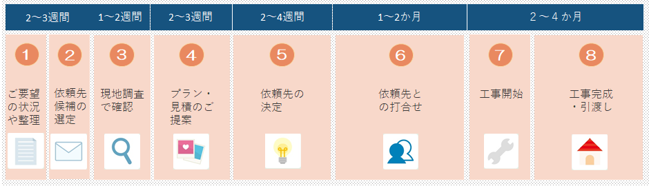 検討をはじめてから工事完成まで, 5か月~9か月かかることもあります。