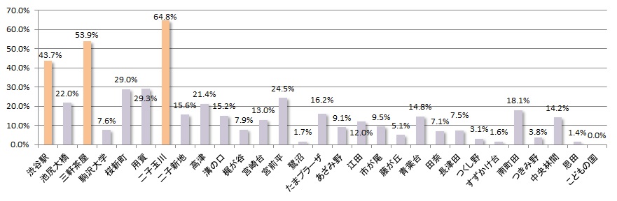 一番上昇率の大きい二子玉川駅は田園都市線のコラムをご覧ください