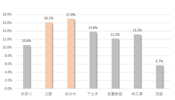 東急多摩川線は他の東急線の路線に比べ、駅数が少ないため上位2駅のみピンク色で表示しています。最も上昇率が高いのは鵜の木駅、次点が沼部駅です。東急多摩川線内では上位ですが東急線全体の平均上昇率は14.3%ですから、東急線全体で比較すると平均値を少し上回る上昇率です。東急多摩川線沿線では、近年大きな開発は少ないですが事業、低層マンションや分譲戸建ての建設は継続して行われています。続きを読む