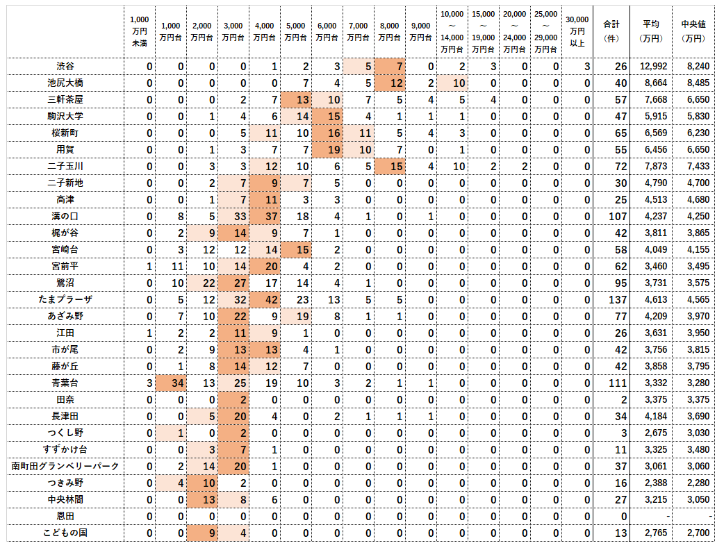 取引実績の多い価格帯とは?|田園都市線・こどもの国線|