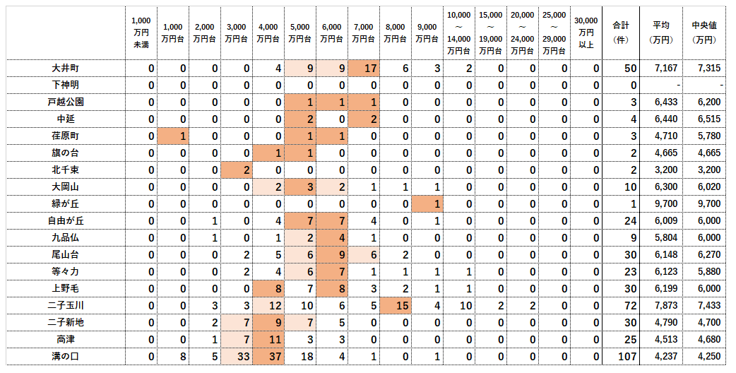 取引実績の多い価格帯とは?|大井町線|