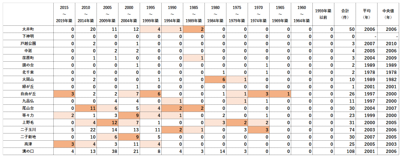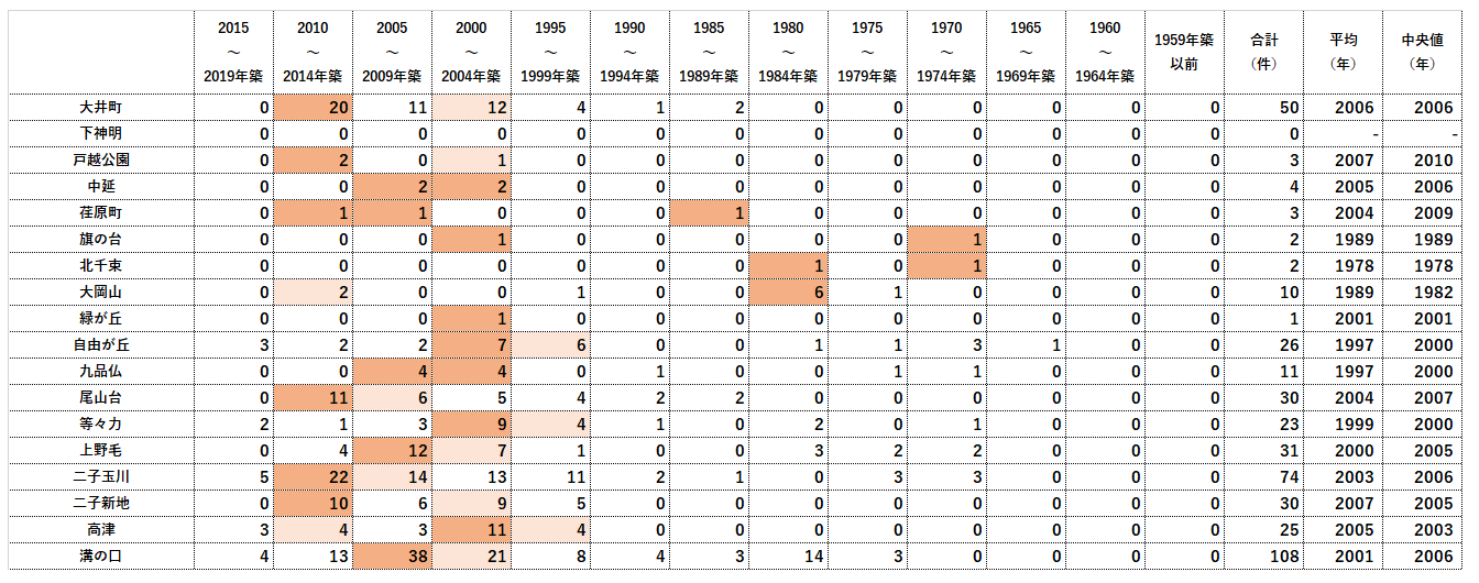 ■大井町線の取引物件 竣工年|2019年取引件数|一覧表