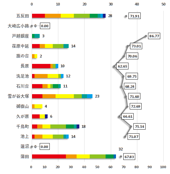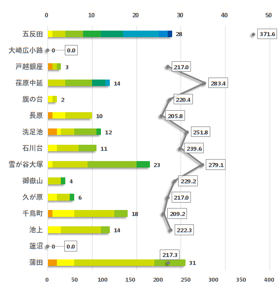 ■池上線の駅からの距離|2019年取引件数|一覧表