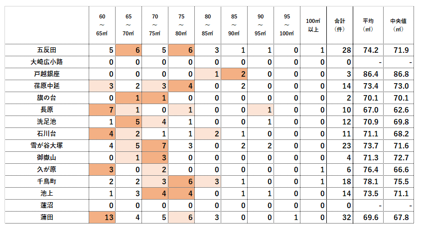 取引実績の多い広さ(専有面積)とは?|池上線|