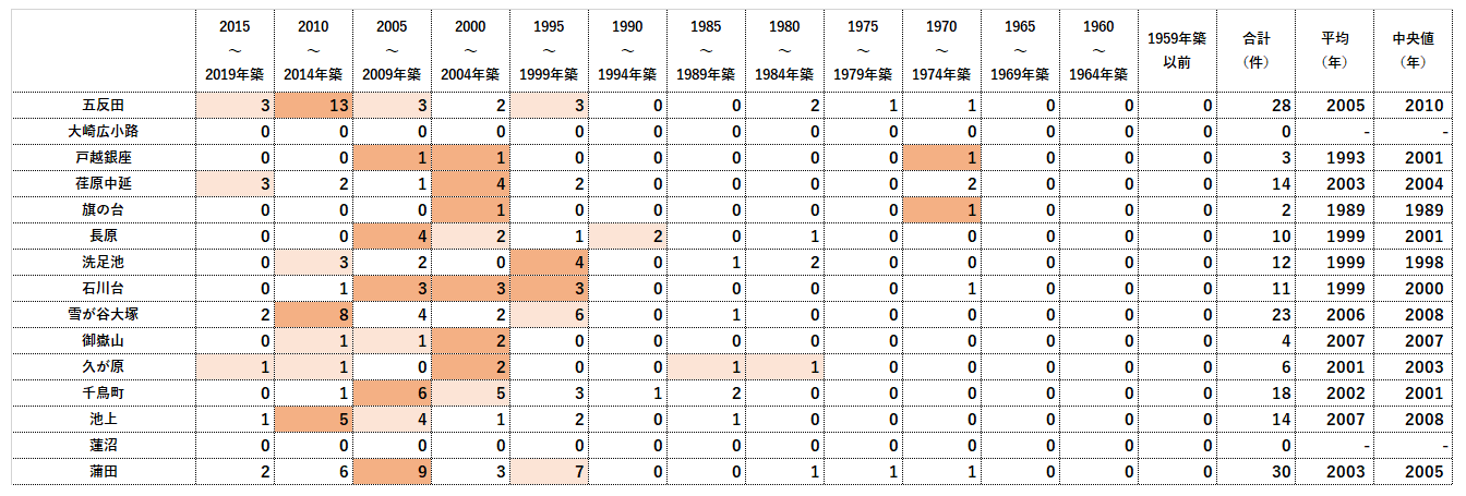 ■池上線の取引物件 竣工年|2019年取引件数|一覧表
