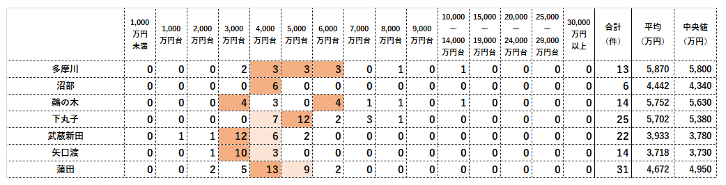 ■東急多摩川線の成約価格|2019年取引件数|一覧表