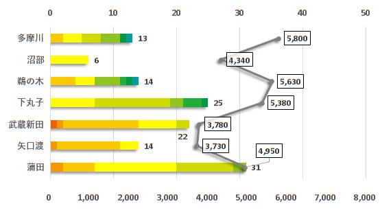 ■東急多摩川線の駅からの距離|2019年取引件数|一覧表