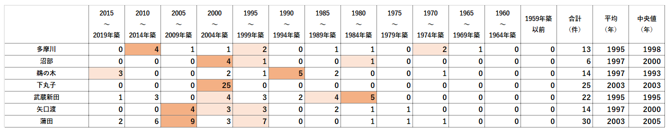 ■東急多摩川線の取引物件 竣工年|2019年取引件数|一覧表
