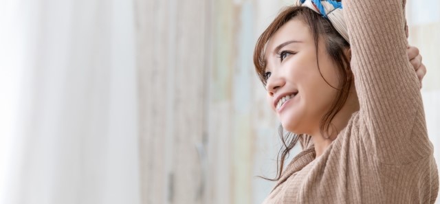 コンパクトな空間にずっといるとどうしても閉塞感を感じてしまいます。なるべくそう感じないようにする工夫をしたいですね。色は目に優しい自然に近い色を用いること、棚や間接照明など横のラインを意識したアクセントを設け、目線を横に広げることなども、閉塞感を軽減させる方法です。