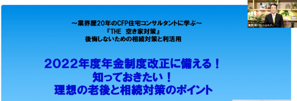 去る8月21日(土)目黒店会場とZoomウェビナーのオンラインにて「空き家対策セミナー」が開催されました。~知っておきたい理想の老後と相続対策のポイント~基本編の1回目です。