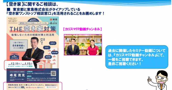 ※本セミナーは「品川区空き家専門相談窓口事業」「東京都空き家利活用等普及啓発・相談事業」として実施致しました。当事業については下記リンクをご参照ください。