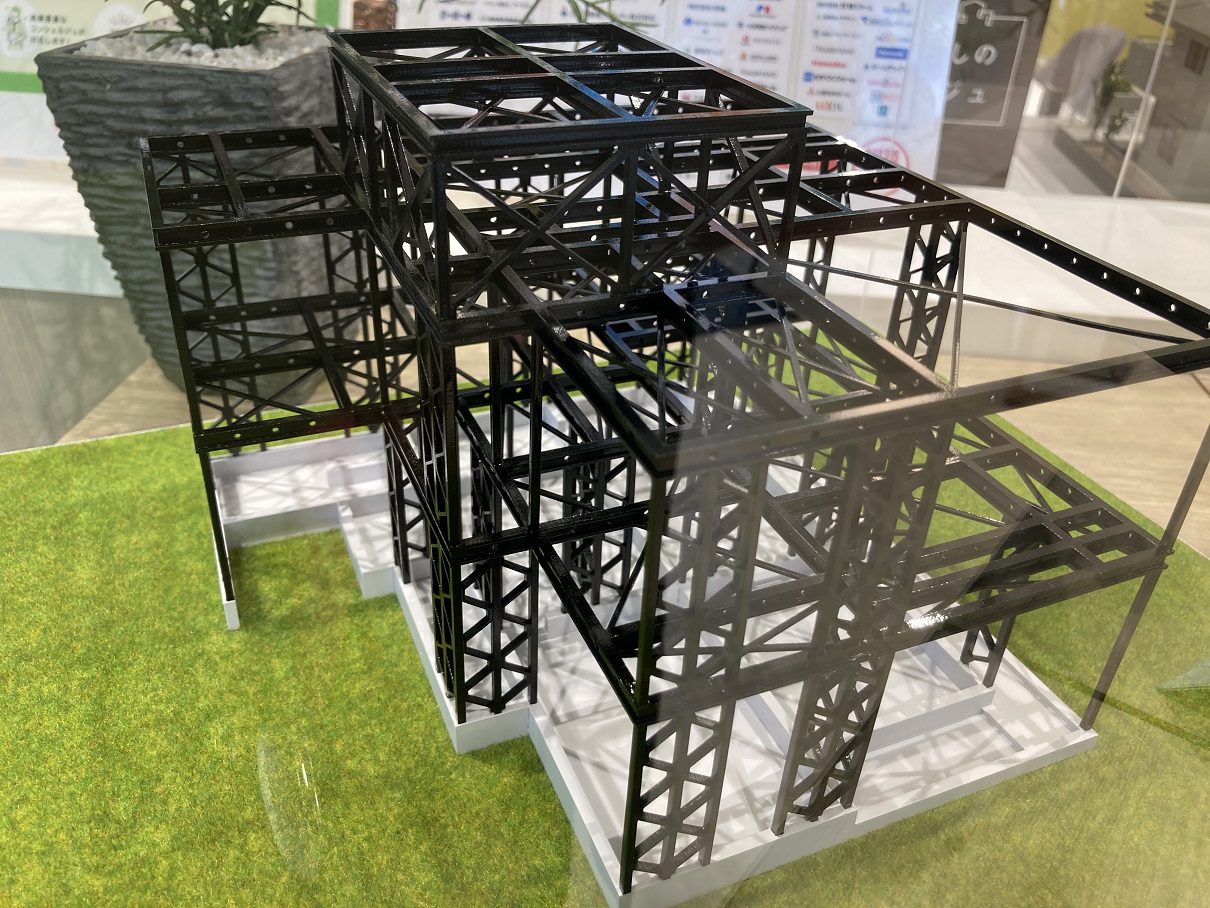 注文住宅の事例集や鉄骨の構造がよく分かる模型などを展示中です!