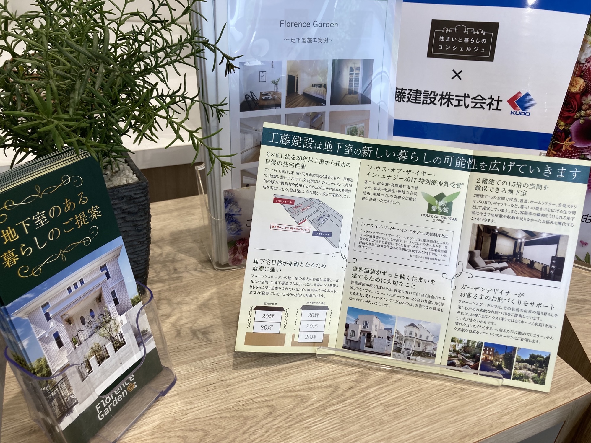 工藤建設はいち早く北米型の地下室付き住宅を開発・導入し、その実績は1200棟以上。そのこだわりを店頭のカタログでご覧いただけます。