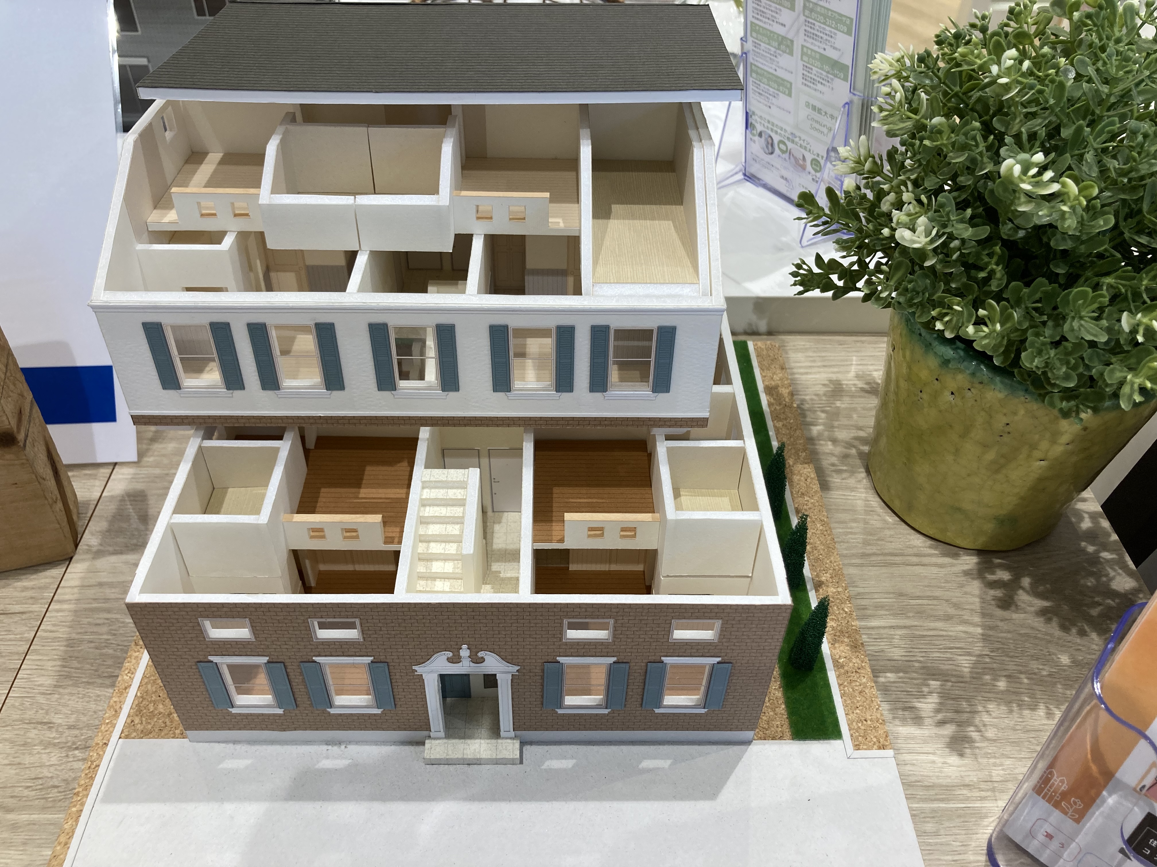 1階と2階、屋根が取り外せるカワイイ住宅模型も展示中。