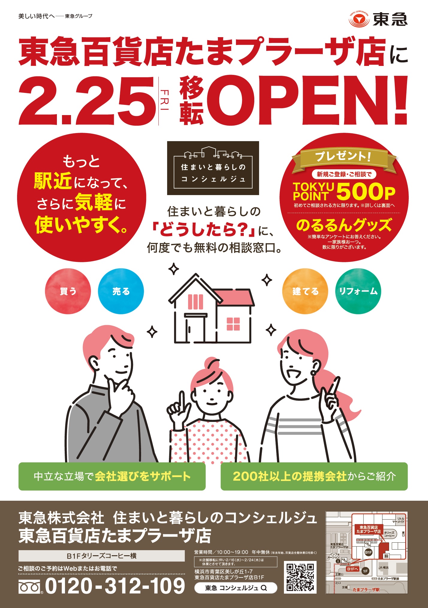 この度、東急株式会社 住まいと暮らしのコンシェルジュ「たまプラーザ店」は、2月25日より「東急百貨店たまプラーザ店」として新しく移転OPENいたします!