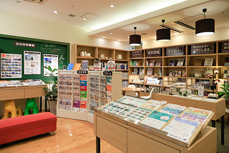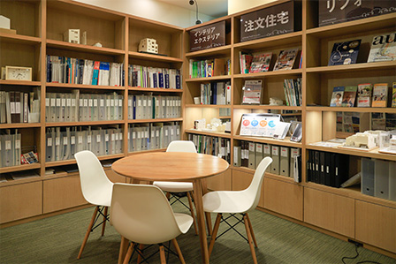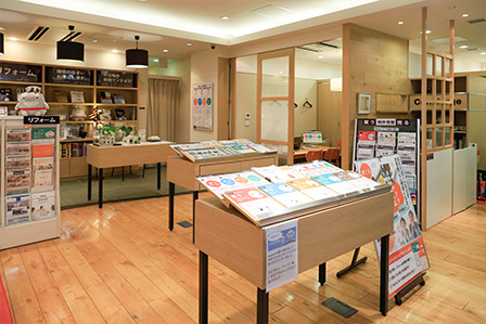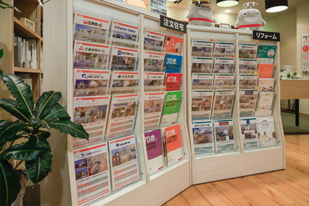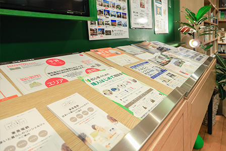 当店は東急線目黒駅 ・JR線目黒駅のJR・東急地下連絡通路沿いにあります。店内にはお住まいに関する展示や、目黒を中心とした不動産情報も数多く取り揃えています。