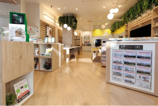 当店は東急線南町田グランベリーパーク駅直結のグランベリーパーク1階にございます。店内はお住まいに関する展示や、南町田駅を中心とした不動産情報も数多く取り揃えています。